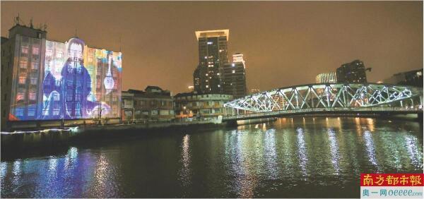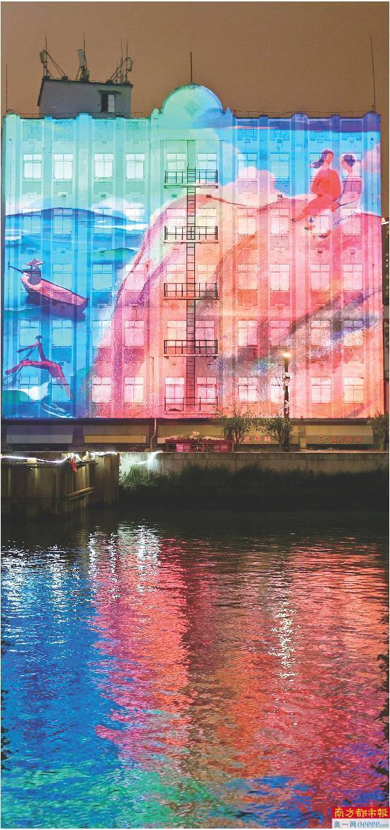 晚风轻拂,苏州河的流水随着光影微微荡漾。关良的孙悟空、陈永锵的锦鲤、林风眠的青衣仕女……一幅幅岭南美术经典画作在河面“活”起来。在第二届上海国际光影节上,“闪亮·上海 静安光影季”特别呈现“其命惟新——广东美术百年大展”光影秀,吸引众多市民游客驻足围观。
